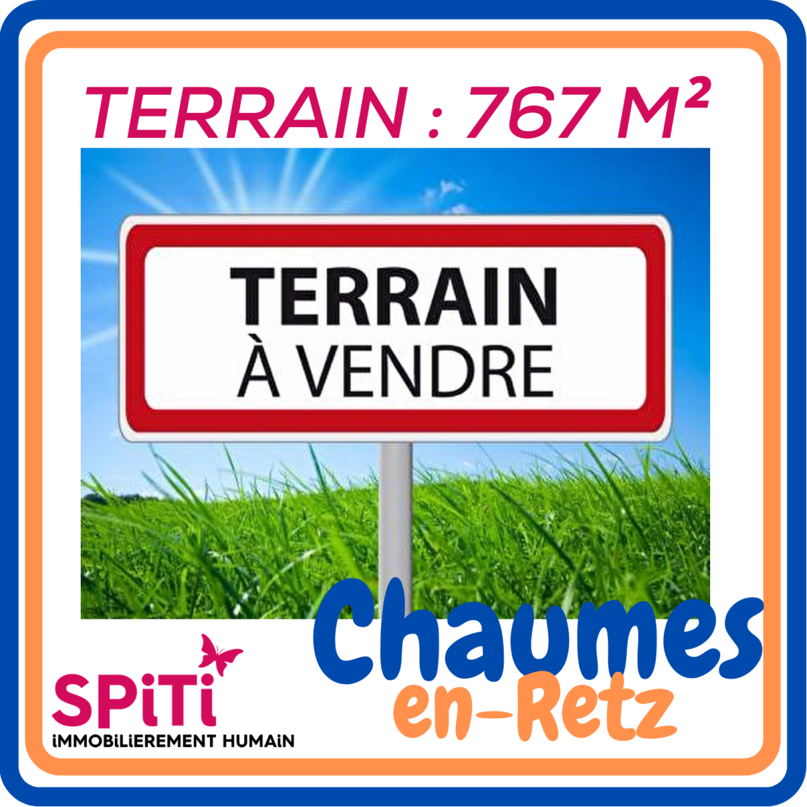 EXCLUSIVITÉ ET SEULEMENT DANS L'AGENCE SPiTi DE CHAUMES EN RETZ - A VENDRE - CHAUMES EN RETZ - TERRAIN PLAT CONSTRUCTIBLE - 767 M² ENVIRON dont 130 m² constructible pour une maison de plain-pied (pas d'étage) - Dans un joli petit village - à moins de 5 minutes de Chaumes en Retz - où il fait "bon vivre" - Cadre champêtre et enchanteur - Construction de la maison en deuxième partie de terrain - Non viabilisé - Desservi par tous les réseaux - Plan de projet de division : fait - DP avec croquis d'intention d'aménagement : fait - Pas besoin de CU - Juste déposé un Permis de construire à la mairie - Libre de constructeur - A VENDRE TERRAIN CONSTRUCTIBLE au prix de : 63.000 € HAI - Charge Acquéreurs - Soit 55.000 € prix net vendeur - Soit 8.000 € TTC d'honoraires - Contactez Christophe HUTTEAU au : 06.19.34.39.26